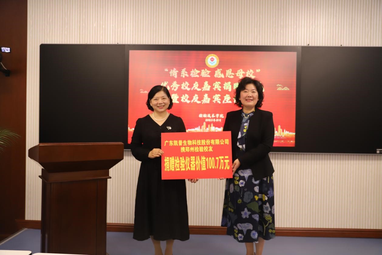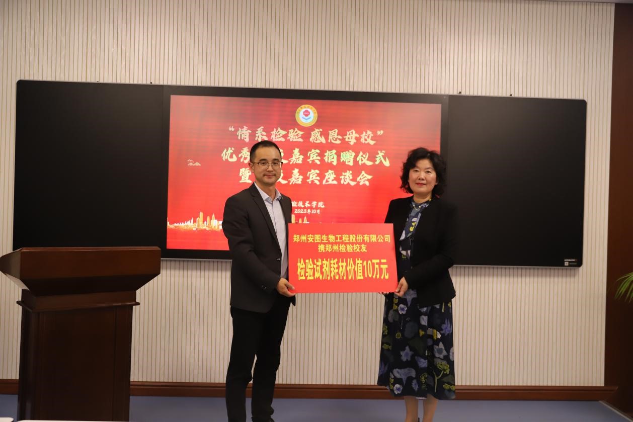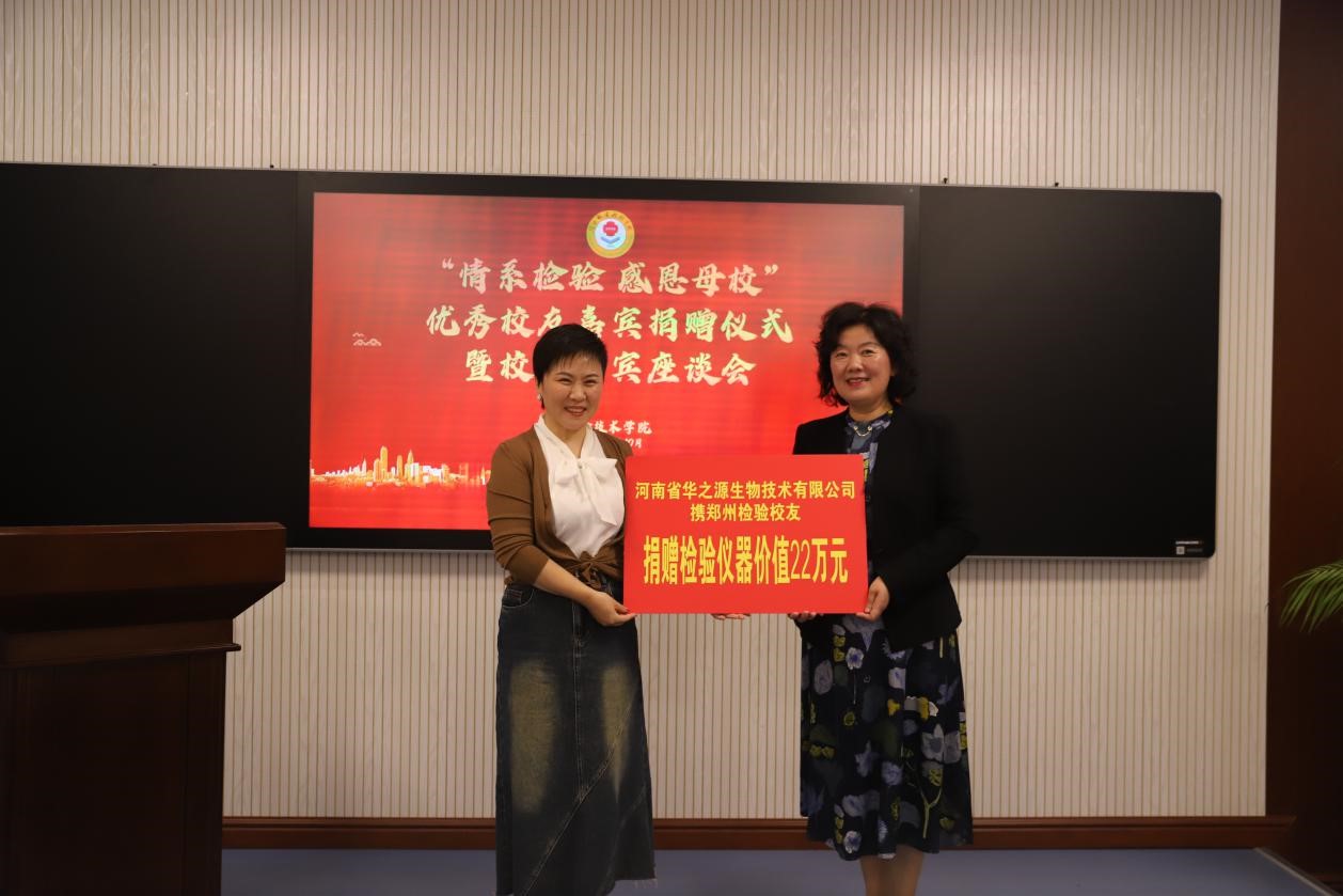 蒋有红代表学校接受校友、嘉宾捐赠并为捐赠颁发荣誉证书。捐赠仪式上,信阳市中心医院、广东凯普生物科技股份有限公司、河南华之源生物技术有限公司、郑州安图生物工程股份有限公司等企业向学校捐赠了一批医学教学仪器、实验仪器、医学书籍和树木等,捐赠总价值达180多万元。