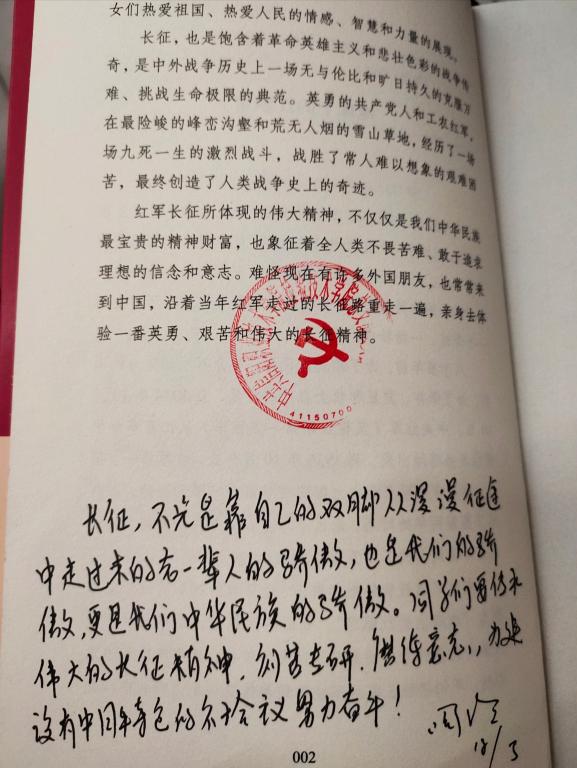 活动最后,党支部为24名学生党员颁发了党史故事书---《长征的故事》,上面写有党总支书记王虹和院长陶玲的寄语,同学们纷纷表示,这是参加的最有意义的活动之一,了解了许多有关党的故事,并为之深深感动!他们纷纷表示一定珍惜学习机会,心怀信念,做红色基因的传承人。