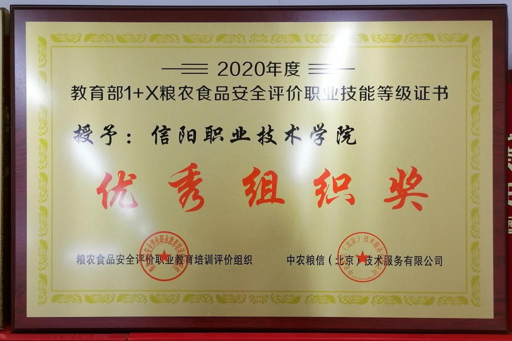 2020年我院卫检专业先后获批河南省“1+X”粮农食品安全职业技能等级证书第三批试点专业和证书考核基地,成为全国卫检专业中首个获批该“1+X”证书试点专业和证书考核基地的院校,于2020年年度考核中被评为优秀组织奖。