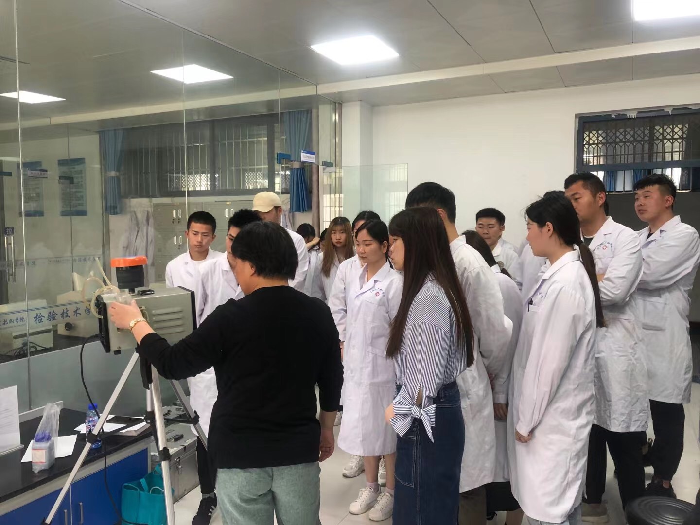 为加强我院卫生检验与检疫技术专业的专业建设,提高人才培养质量和办学水平,实现理实一体化,同时增强学生的职业认同感和责任感,5月24日下午,我院在外聘教师聂卓娅的沟通协调下,特邀信阳市环境监测站专家对我院即将进入实习岗位的2019级卫检专业学生进行了一场别开生面的“环保仪器进课堂”的现场教学。