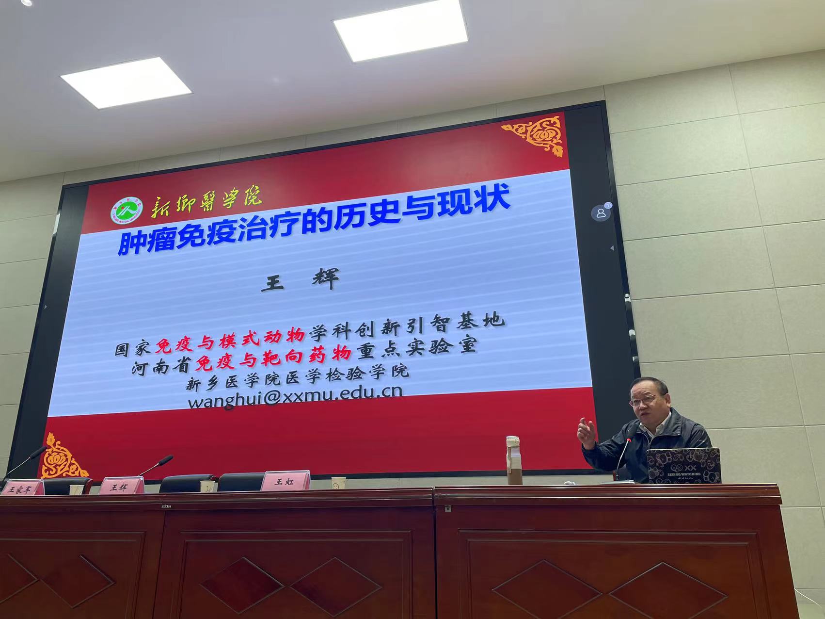 3月17日下午,新乡医学院副校长、王辉教授应邀到我校作学术讲座。王辉教授是博士研究生导师、中国免疫学会常务理事、科普与教育工作委员会副主任委员、国家免疫与模式动物学科引智基地负责人、河南省高等学校医学技术类本科教学指导委员会主任委员。王辉教授讲座的题目是《肿瘤免疫治疗的历史与现状》,学校副校长王家军、科研处处长万福成、麻豆人妻少妇精品无码区党总支书记王虹、院长陶玲及麻豆人妻少妇精品无码区、医学院师生共300余人参加了此次讲座。