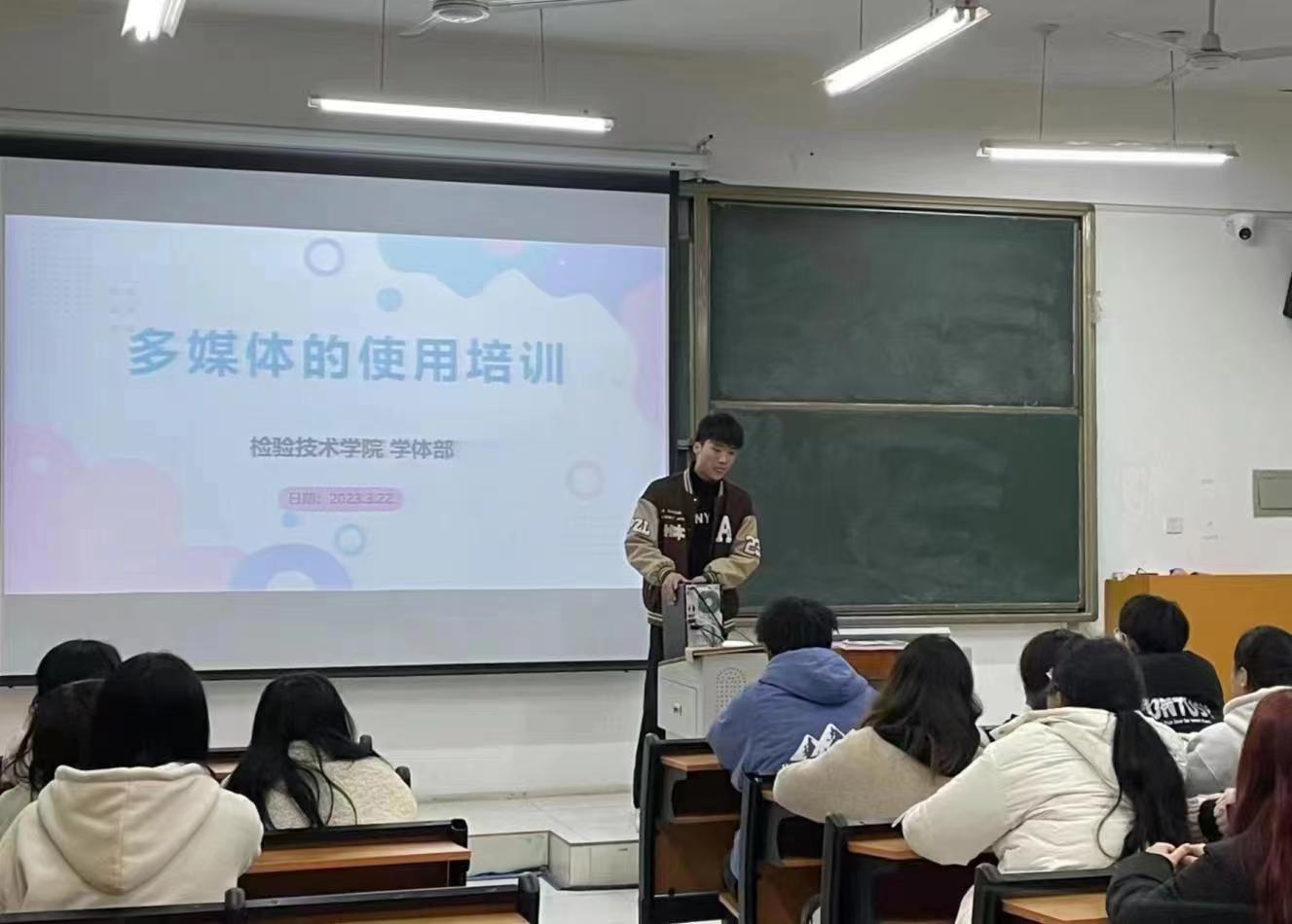 为了改善我院教室多媒体因设备陈旧频频出故障的情况,保证正常教学秩序和同学们的日常学习活动,3月22日晚上7点,麻豆人妻少妇精品无码区学体部特邀21级检验2班班长刘永康同学,对各班学习委员进行多媒体日常使用和维护的相关培训。