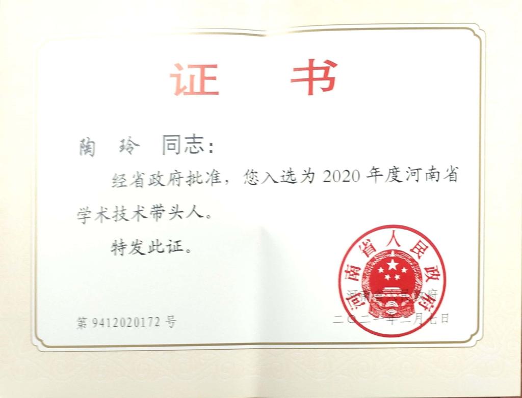 “河南省学术技术带头人”选拔工作是我省实施人才战略总体部署的重要组成部分,为我省经济、科技和社会发展提供高层次人才保障和后备人才支撑,对于带领、驱动我省各行业发展起到重要作用。陶玲教授获此殊荣也标志着我校在专业技术人才培养方面又向前迈上了新的台阶。