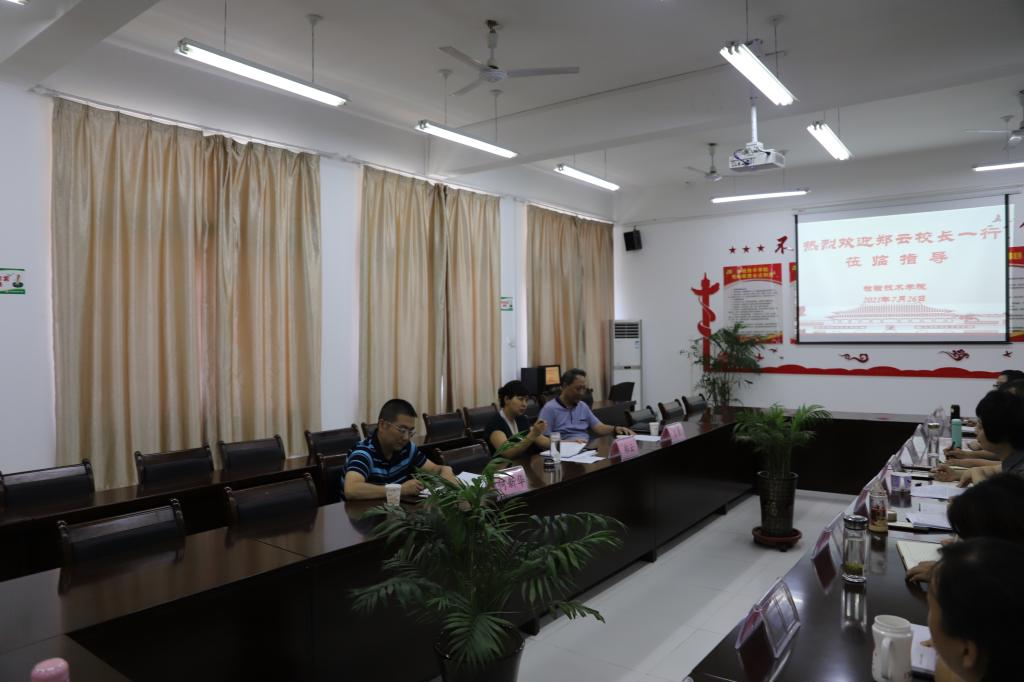 7月26日下午,校长郑云教授深入麻豆人妻少妇精品无码区调研,副校长王豪、校长办公室何新华主任随同调研。麻豆人妻少妇精品无码区院长陶玲、党总支书记王虹、副科级以上干部以及教师代表参加汇报交流,调研会由副校长王豪主持。