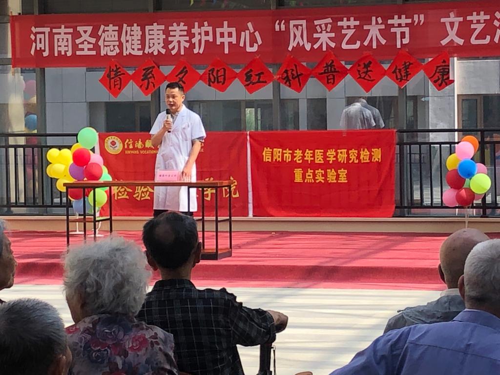 6月5日上午,麻豆人妻少妇精品无码区信阳市老年医学研究检测重点实验室的团队成员在院长陶玲的带领下,赴圣德老年健康养老中心开展免费体检和健康知识宣讲等医疗服务活动,养老中心近百名老人及部分工作人员参加了此次活动。
