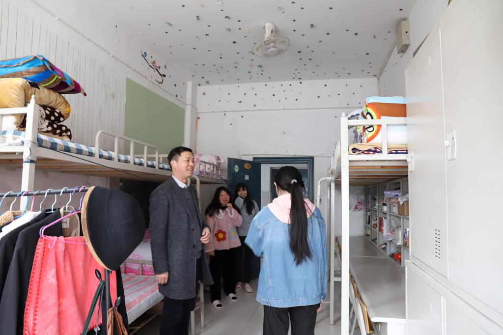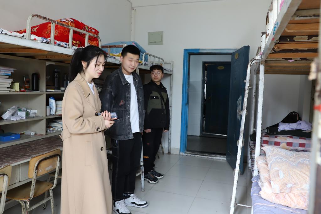 殷书记每到一个宿舍,都与同学们亲切交谈,向同学们强调文明宿舍创建的重要性,要以自己的行动为文明宿舍创建添砖加瓦。