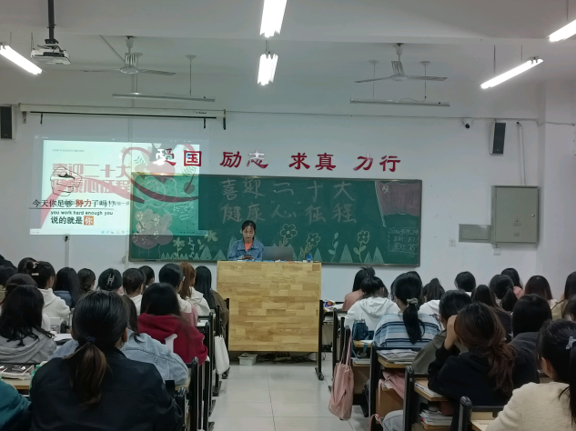首先,以班级为单位开展了“喜迎二十大,健康‘心’征程”主题班会,尽可能的让同学们都融入到自身心理健康的良好氛围中去,班会的开展,提升了同学们的心理健康意识水平、心理素质及自我认知能力。