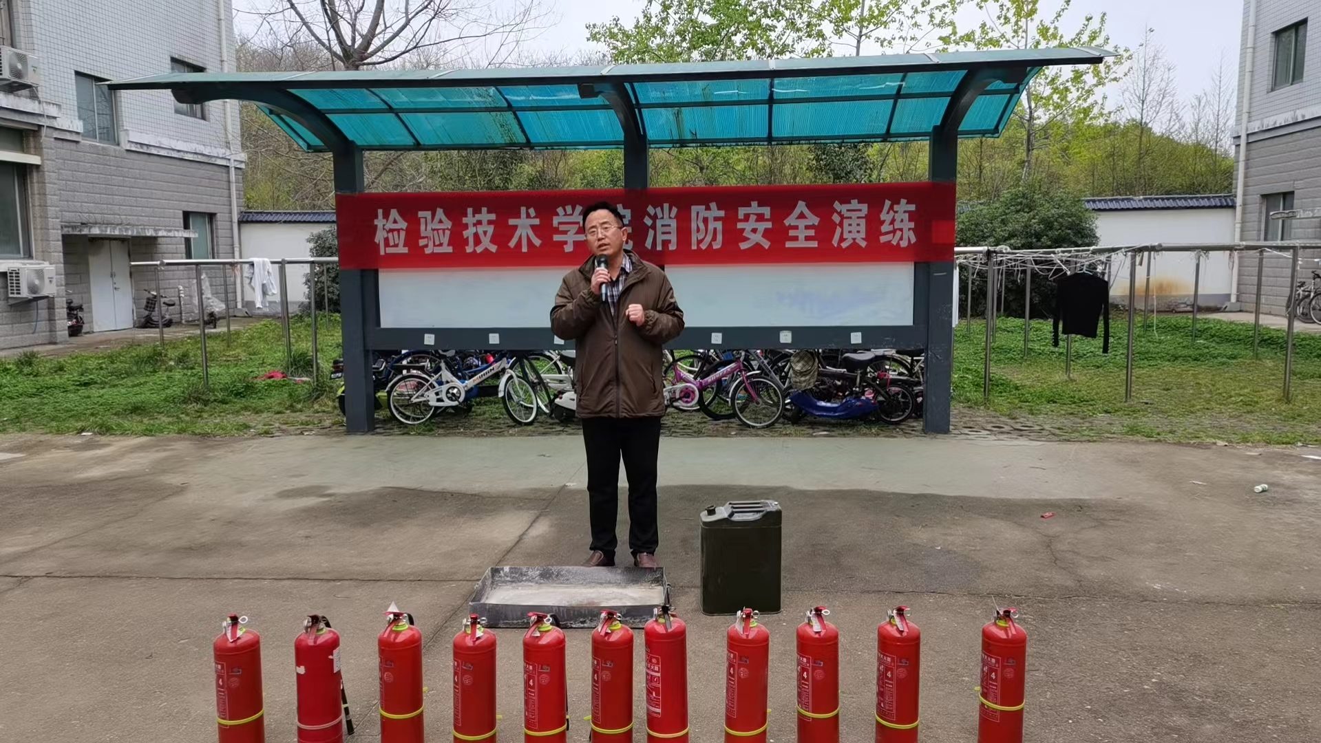 最后,吴科长现场讲解并示范了灭火器的使用方法、使用距离、使用角度等,还讲述了灭火器的一些注意事项。在场的学生积极进行实际操作,真正在实践中掌握灭火技能。