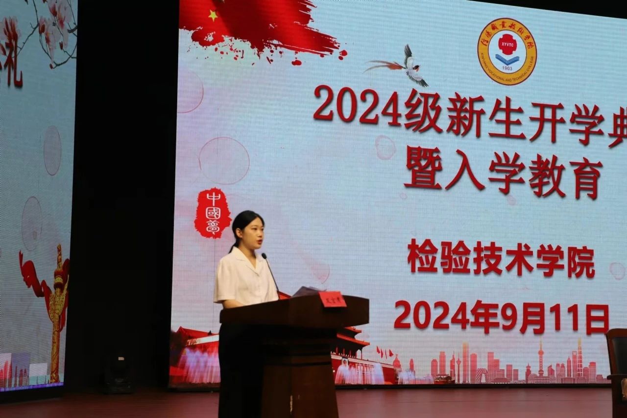 学校副校长郑延芳为新生上了一堂别开生面的开学第一课,并提出三点希望,一是要努力学习知识,练就过硬本领;二是要积极学习思考、培养创新精神;三是要胸怀大爱之心,锤炼高尚品德,最后嘱托同学们要以青春之我,开启逐梦之航,助力信职高质量发展。