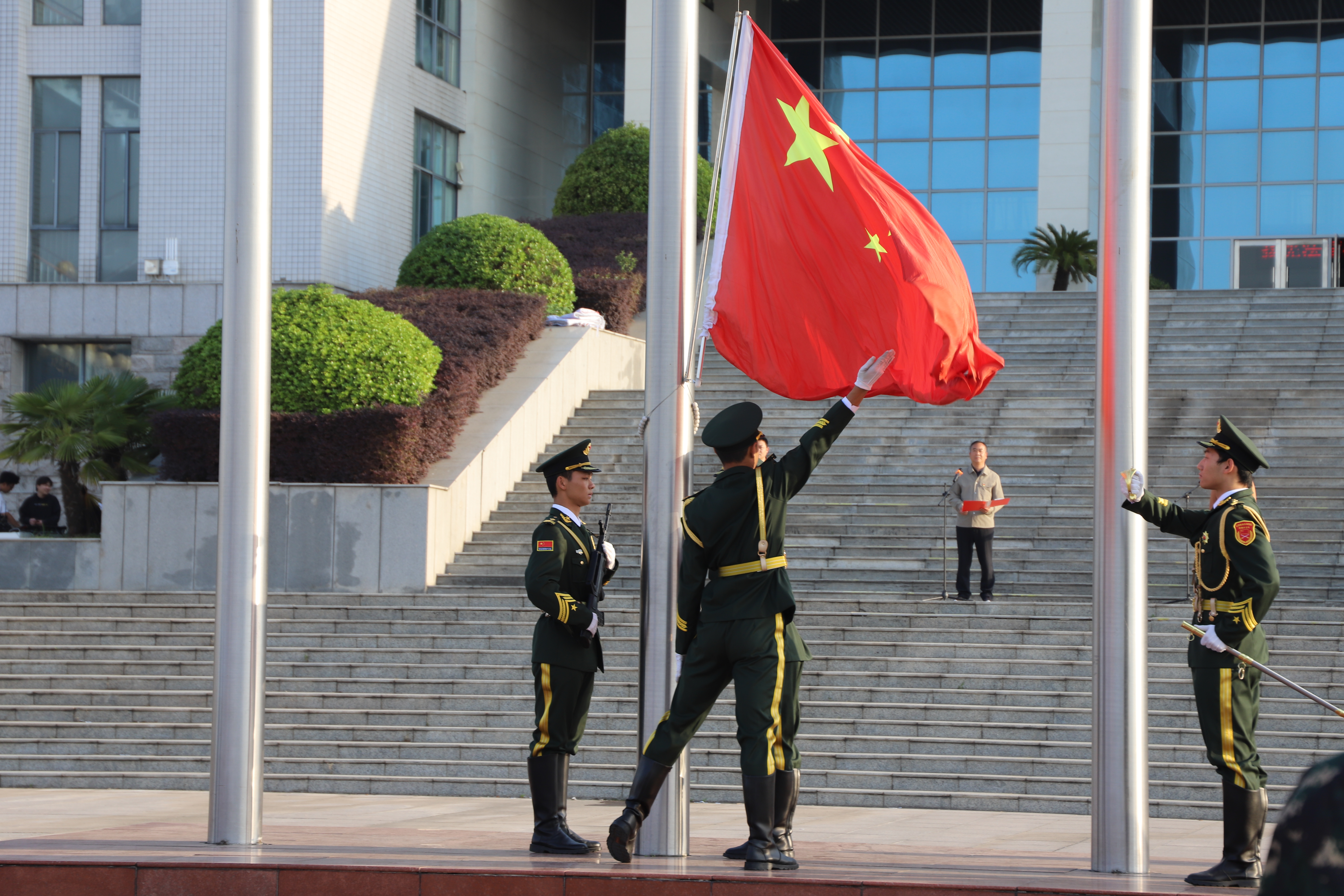 6:58分学校国旗护卫队迈着整齐的步伐走向升旗台,7:00整伴随着雄壮的《义勇军进行曲》,鲜艳的五星红旗冉冉升起,全院师生怀着敬意,列队肃立,齐唱国歌,表达对祖国的无限忠诚与热爱。