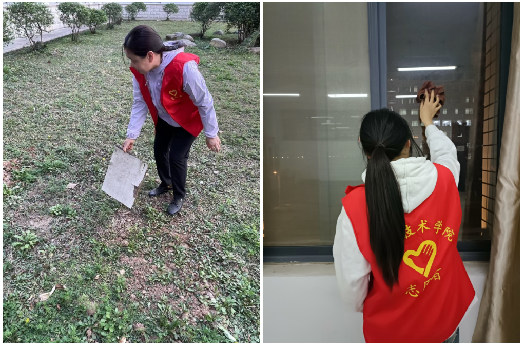 活动伊始,学工党支部书记孟丹丹向大家传达了学校“文明月”、“文明日”活动要求,志愿者们在院内集中开展办公室、寝教室、实验室及周边校园环境等卫生大扫除活动,彻底清理卫生死角,净化美化校园环境。