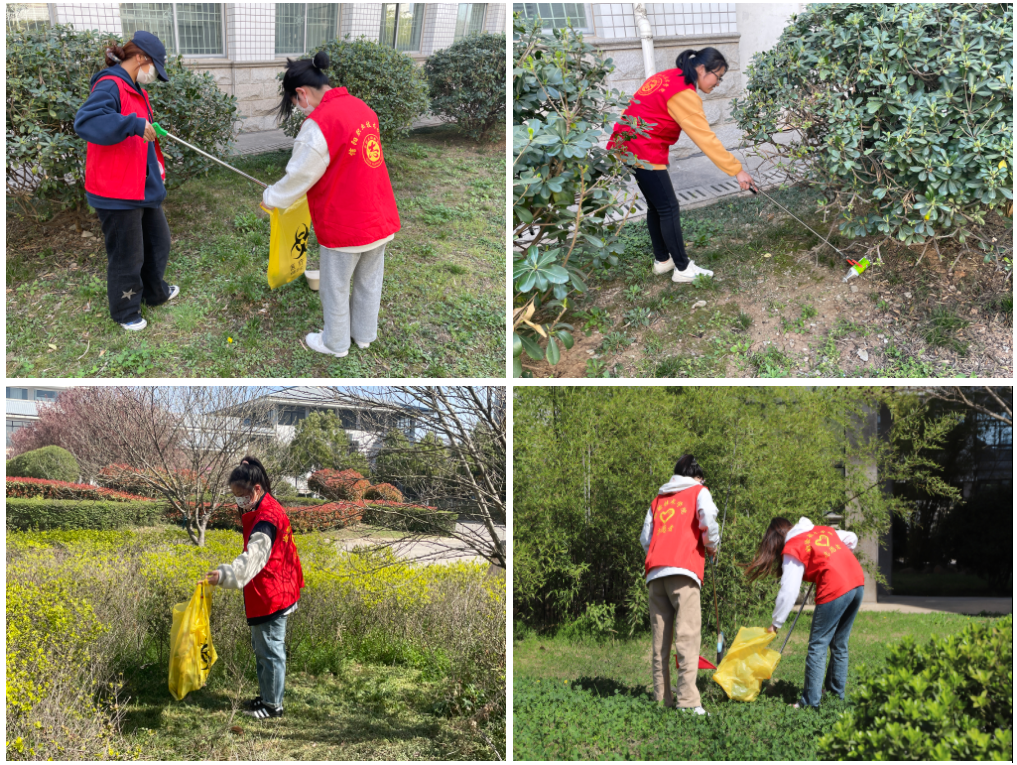 阳光明媚,志愿者们身穿红色马甲,手提垃圾袋走遍院内每一个角落,所经之处垃圾无踪,院内路旁、草地整洁一新。在卫生清理的过程中,大家体会到劳动的光荣,提高了维护校园整洁的责任心,坚定了文明校园创建的信心。