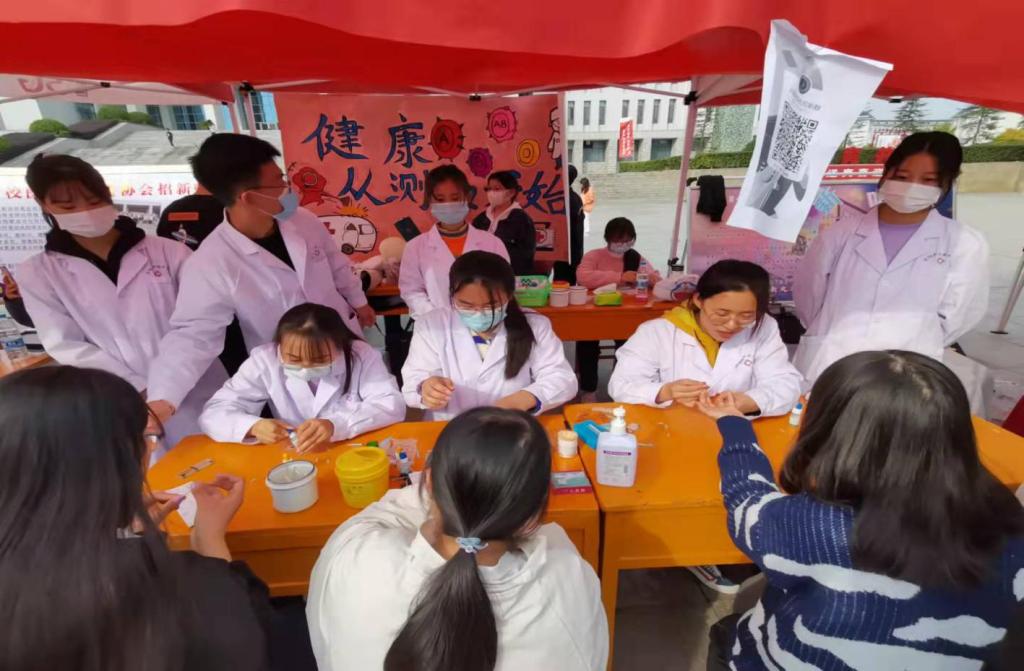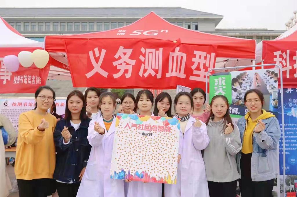为丰富学生校园生活,推动校园文化建设,促进检验学子的德智体综合发展,10月31日,麻豆人妻少妇精品无码区团总支求实社参加了共青团信阳职业技术学院首届社团嘉年华暨纳新活动,于25号场地开展健康宣传及义务测血型活动。