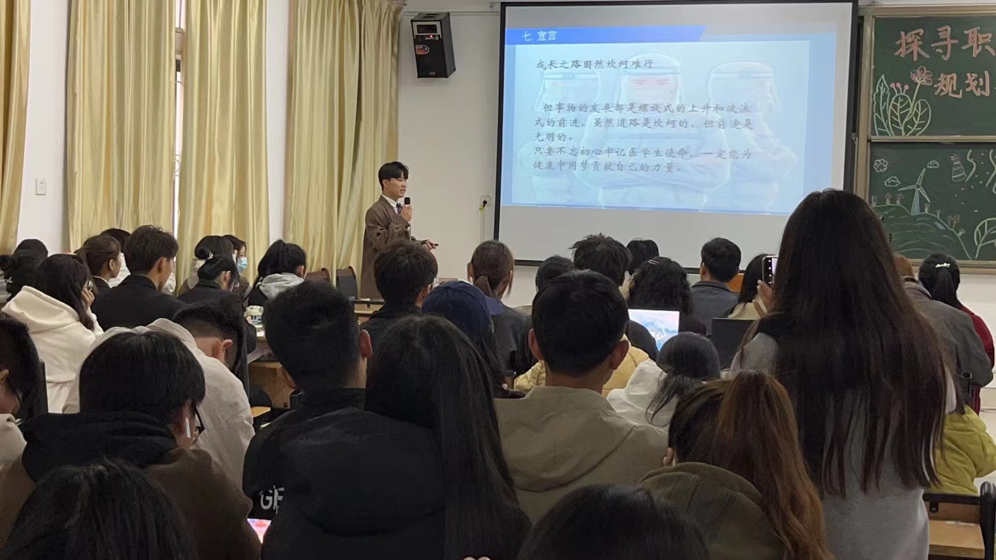 比赛现场,选拔出的11名选手结合彰显个性的PPT进行了精彩的展示,他们立足自身专业知识,结合特长和兴趣爱好,或立志于基层服务乡村医疗事业、或化身于医务人员投身抗疫一线等等,立足自我认知,锚定职业目标,做出明晰的职业生涯发展规划,在小小的舞台上,上演着精彩的职场真人秀;以职业生涯规划实践践行习近平总书记对青年人关于“肩负历史使命,坚定前进信心,立大志、明大德、成大才、担大任,努力成为堪当民族复兴重任的时代新人”的嘱托。