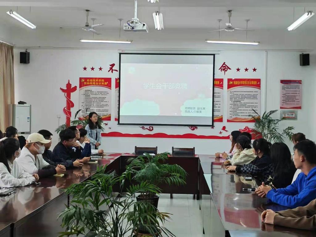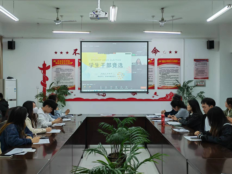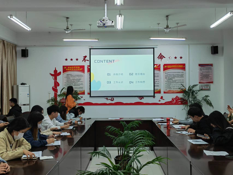 随后进行学生会各部部长竞聘选举。经过前期民主推荐、初步考核有16位同学参加竞聘。通过竞聘,团总支选拔出  名同学做为学生会部长,并将拟聘任名单及职务上报学院团总支、学生党支部,经学院党总支审核后公布。换届选举完成后,新一届的学生会干部考察期三个月,通过考核后正式上岗并颁发聘书。