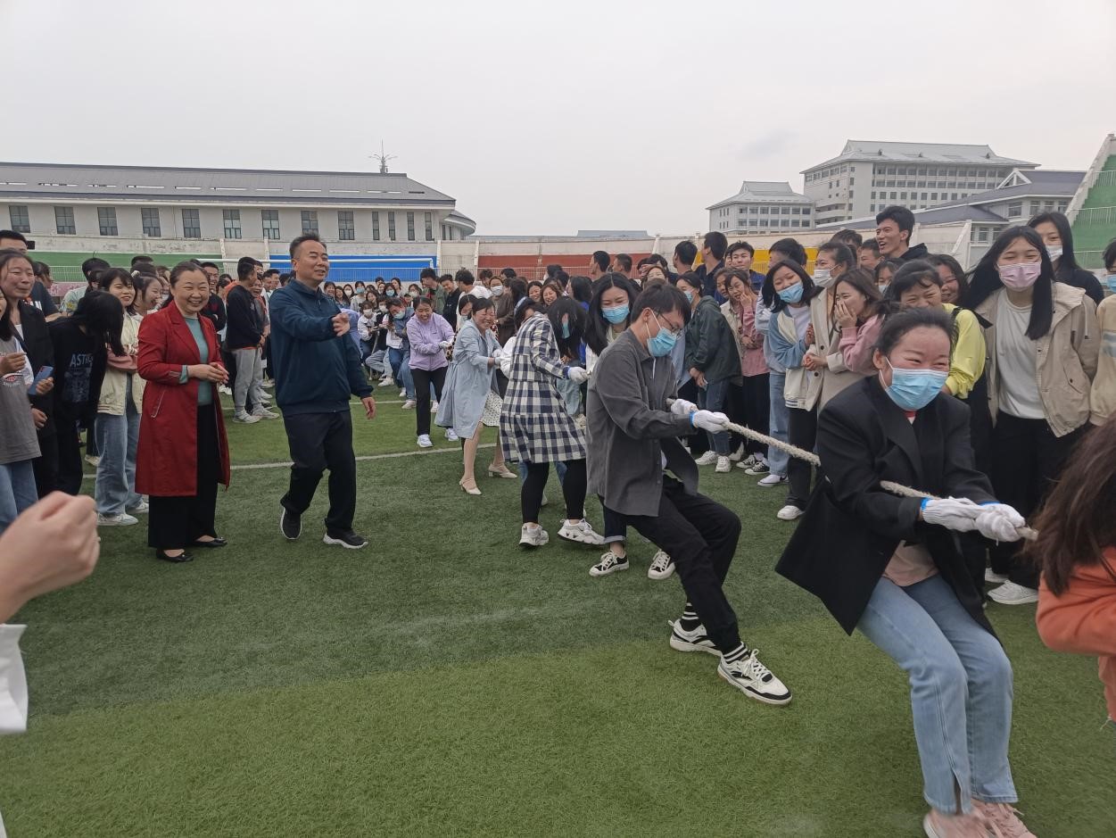 为进一步贯彻落实教育部关于《高等学校学生心理健康教育指导纲要》精神,充分发挥心理育人的重要作用,引导学生释放压力、放飞心情,4月12日下午,我院在体育场举办心理素质拓展暨师生拔河比赛活动。学院党总支书记王虹、院长陶玲等领导老师到场为同学们加油助威。