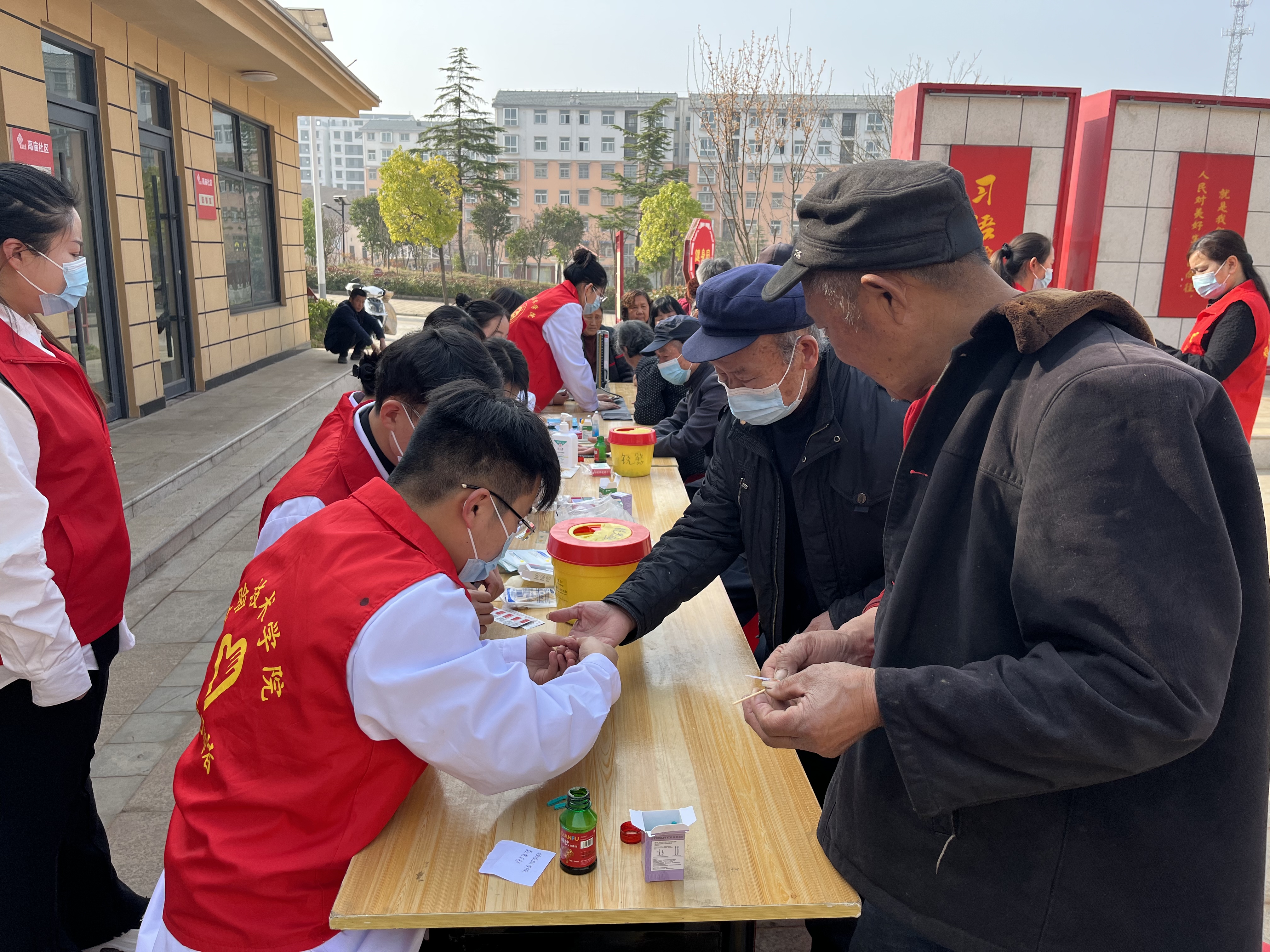 师生党员精神饱满、热情高涨,身穿红马甲,认真为社区居民进行血压、血型、血糖测定,并耐心指导社区居民健康饮食,用实际行动弘扬了雷锋精神。居民们竖起大拇指称赞信阳职业技术学院的师生学雷锋做好事,专业水平扎实,技术能力精良,科普通俗易懂,纷纷表示要重视健康饮食,珍爱生命。师生党员们也纷纷表示要积极践行并传承雷锋精神,弘扬正能量,为全面建设社会主义现代化国家贡献力量。