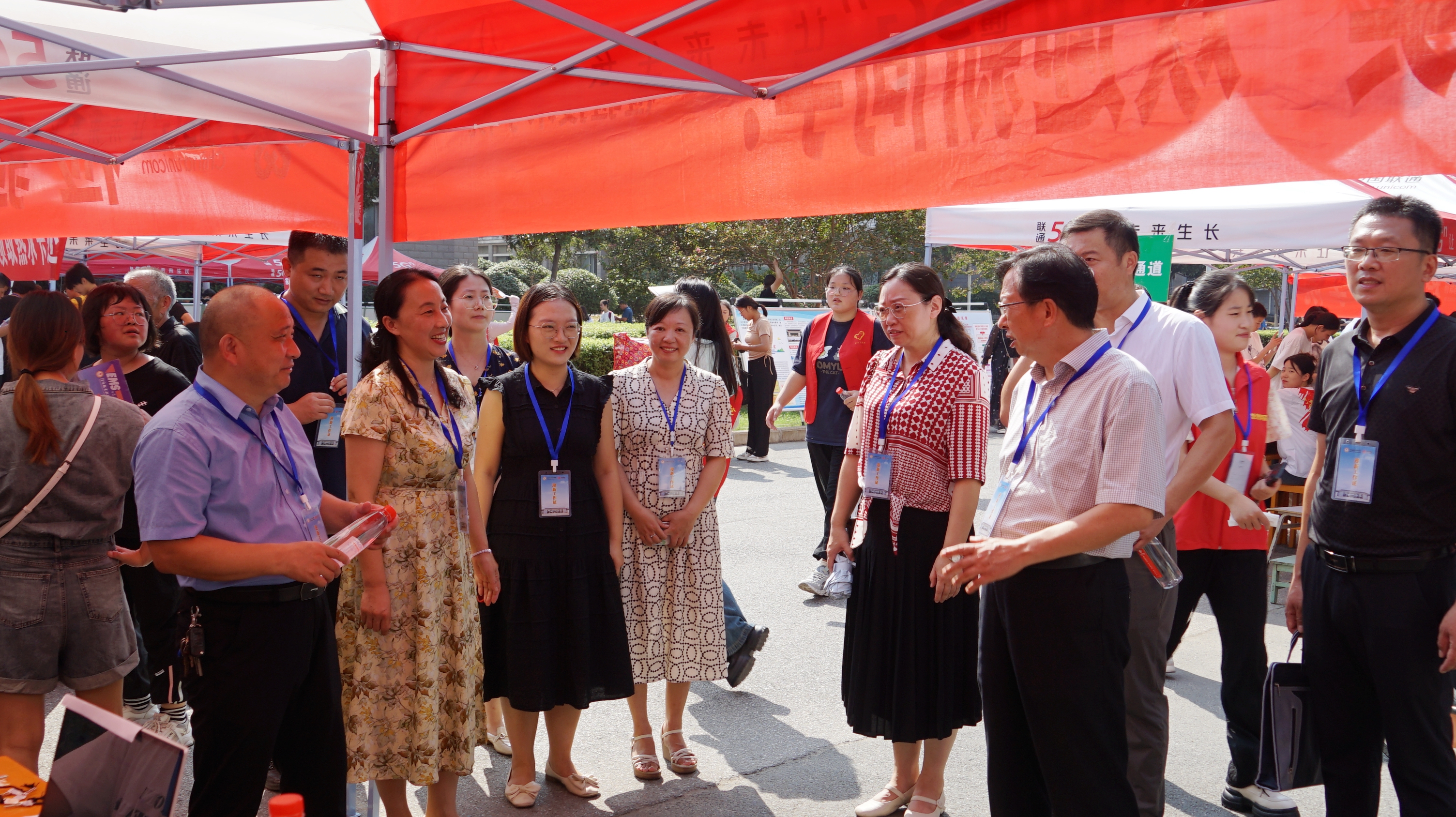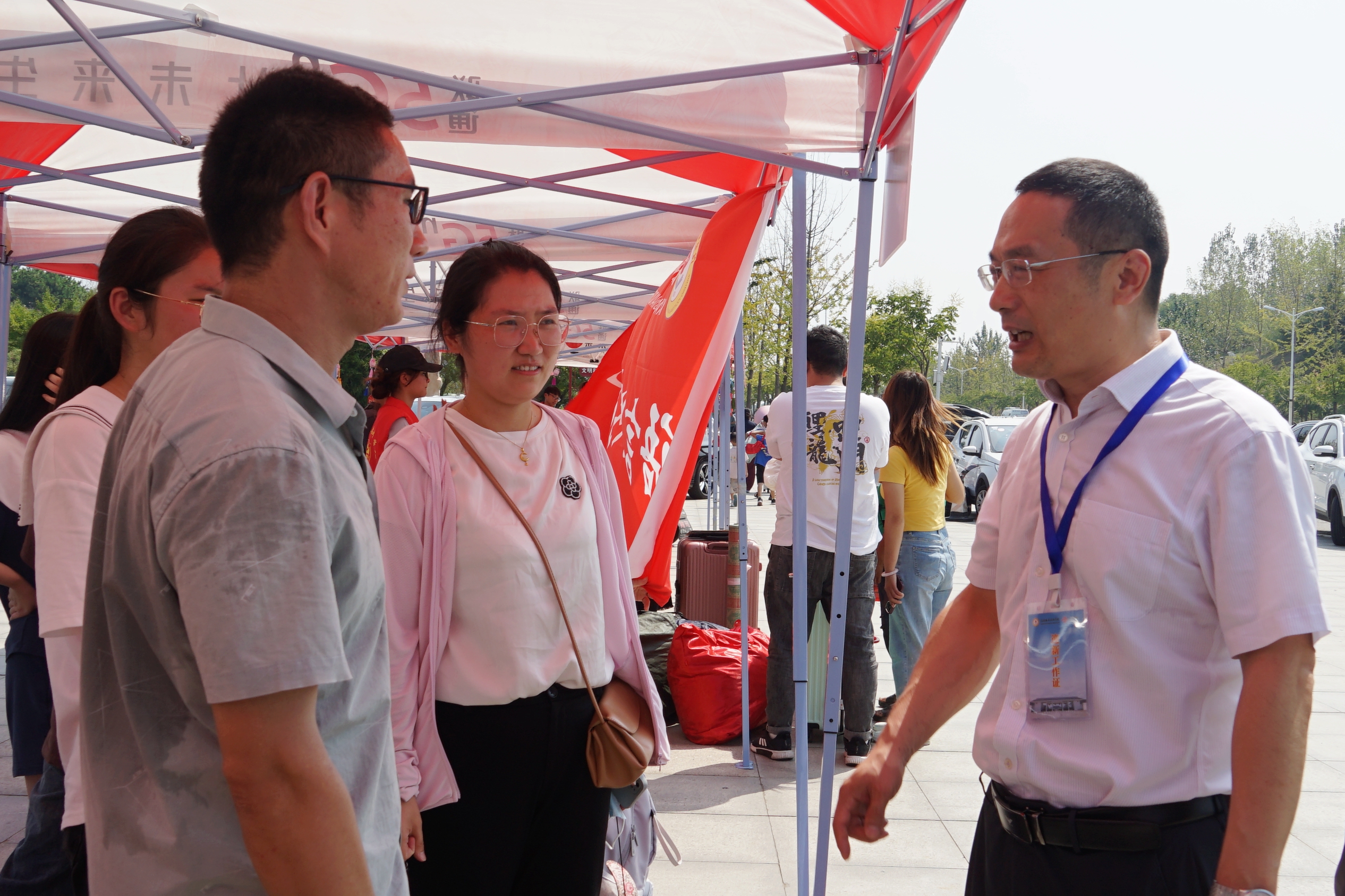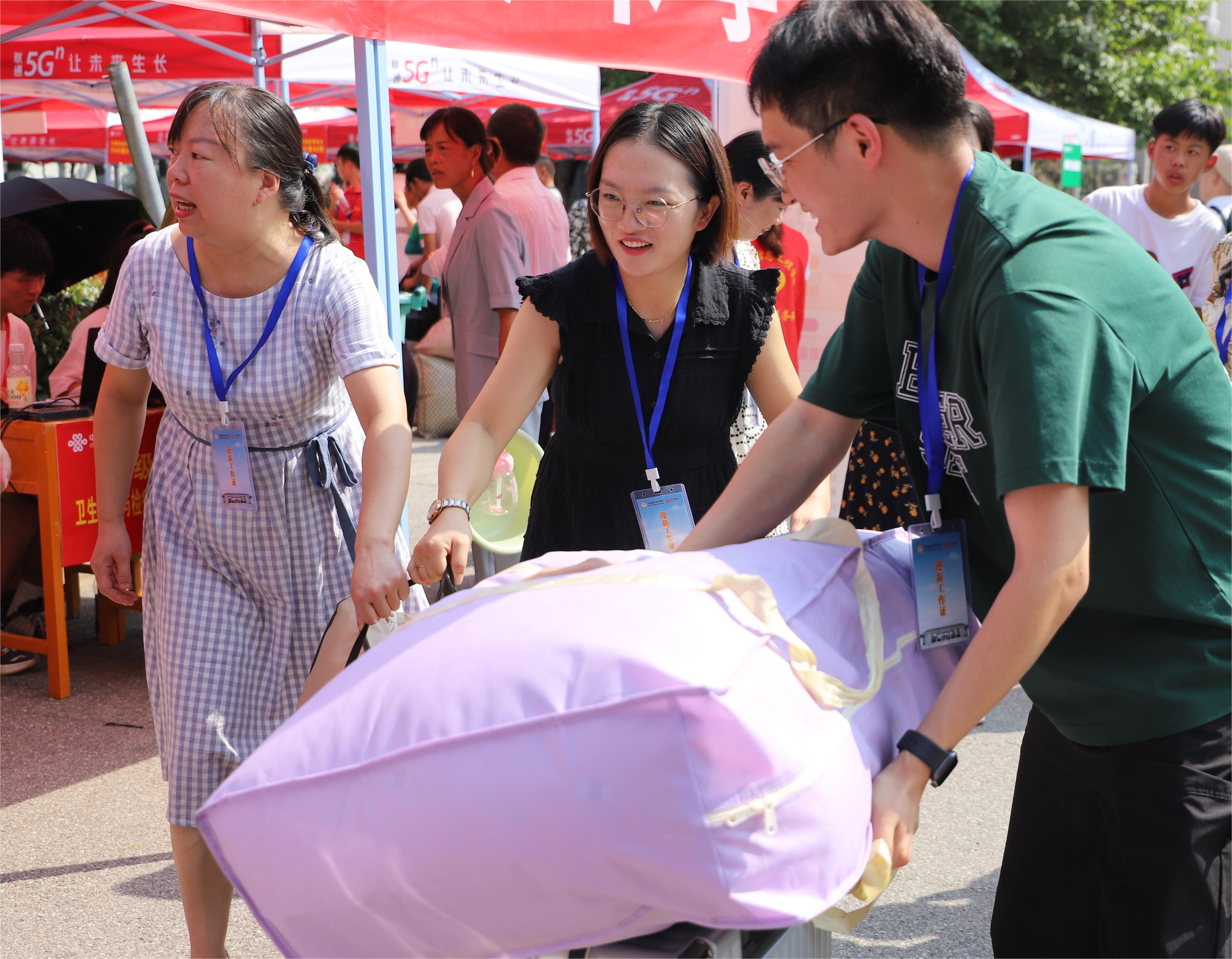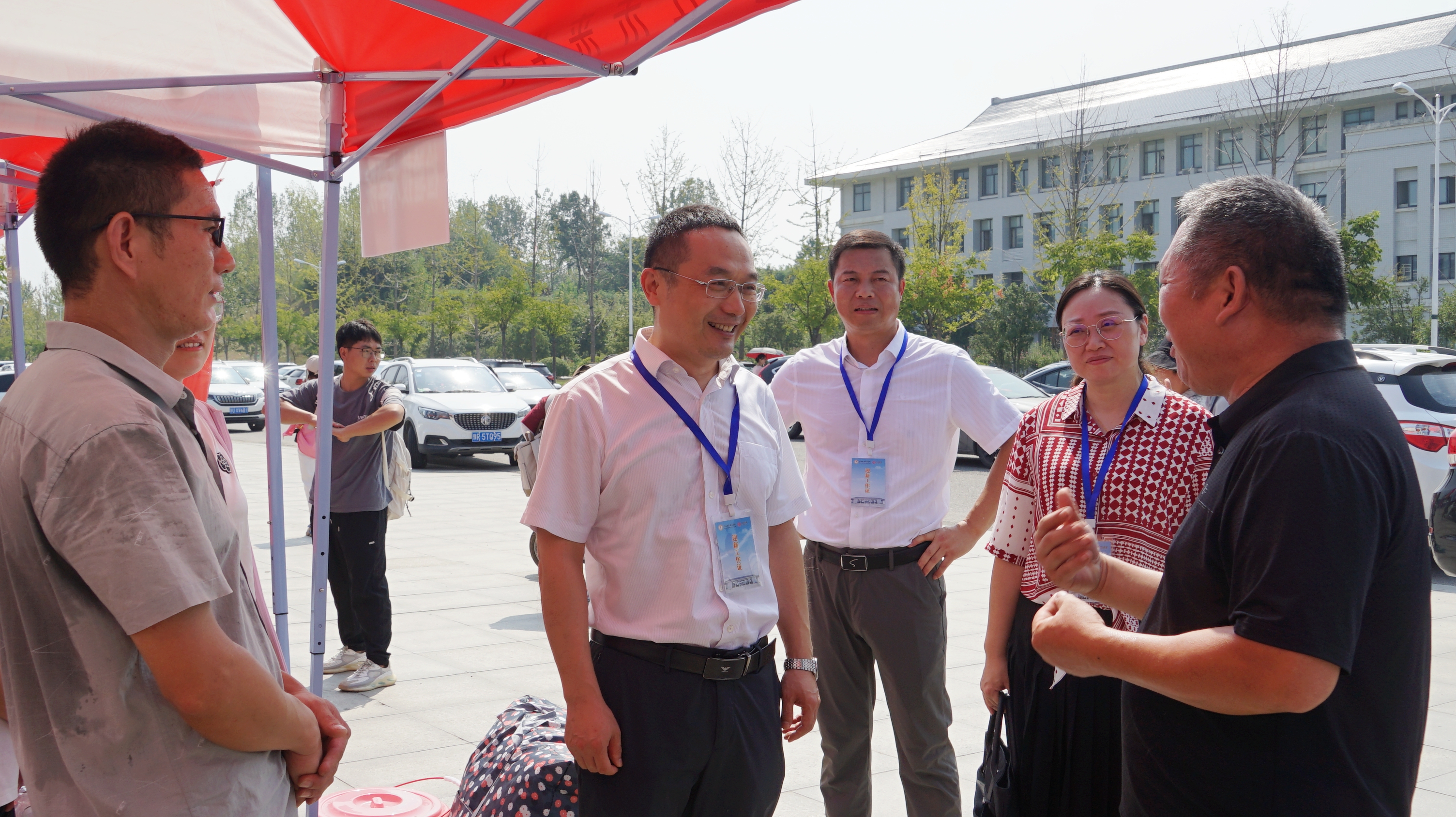 2023年9月9日,学校迎接新生工作的第一天,我校校长李森、党委副书记王操志、副校长李新毓、郑延芳、工会主席黄新在校办、宣传部、学生处等部门负责人陪同下视察迎新工作,他们先后来到明德广场学生分流点和学生东、西宿舍区,现场了解志愿服务情况和新生报到情况,并与学生家长亲切交谈。