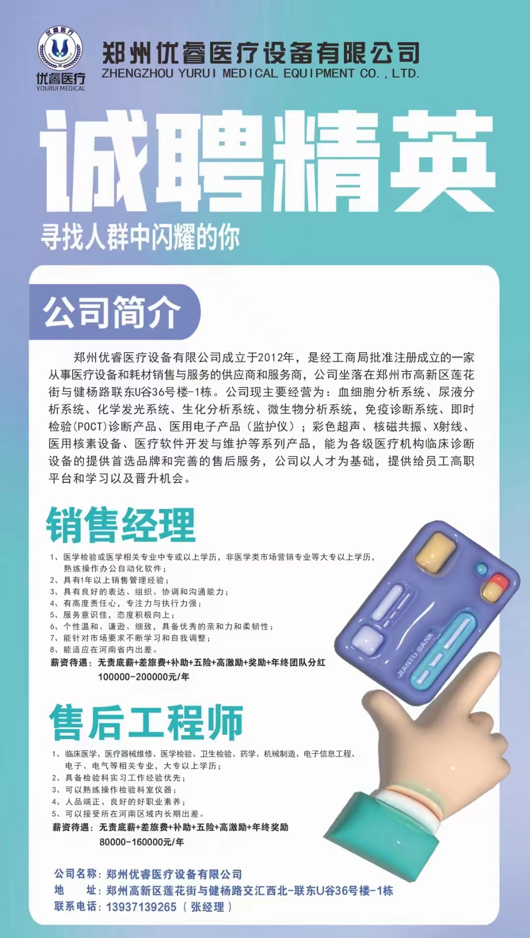 郑州优睿医疗设备有限公司招聘简章